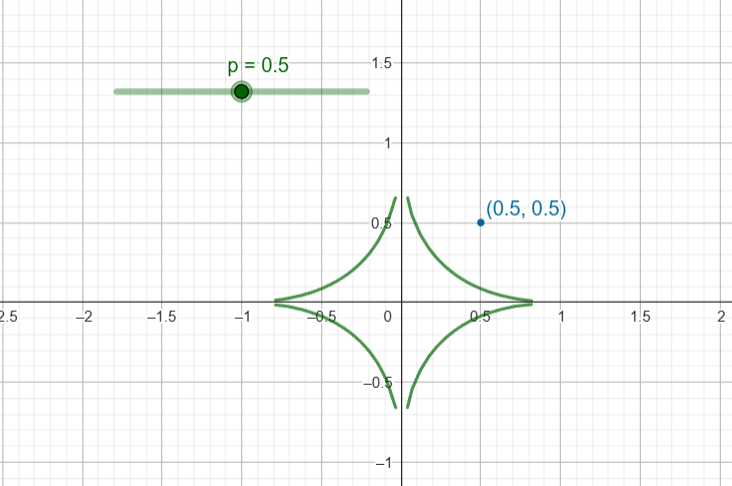 Observa que la bola unitaria no es convexa, es decir, que hay dos puntos en la bola $(1,0)$ y $(0,1)$ tales que el segmento $(1-t)(1,0) + t(0,1)$ no está contenido en la bola unitaria. En particular, para $t= \frac{1}{2}$