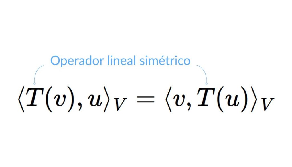 Definición: Sea $V$ un $\mathbb{R}$-espacio vectorial con un producto interno $\langle\, ,\, \rangle_V$ y $T \in \mathcal{L} (V,V)$. Decimos que $T$ es simétrico si $\langle T(v) , u \rangle_V = \langle v , T(u) \rangle_V$ para todo $u,v \in V.$