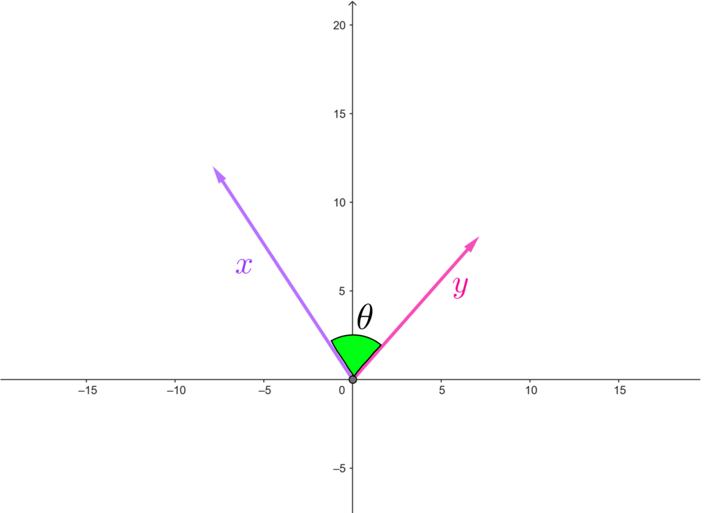 donde $\theta$ es en ángulo entre los vectores $x$ y $y.$