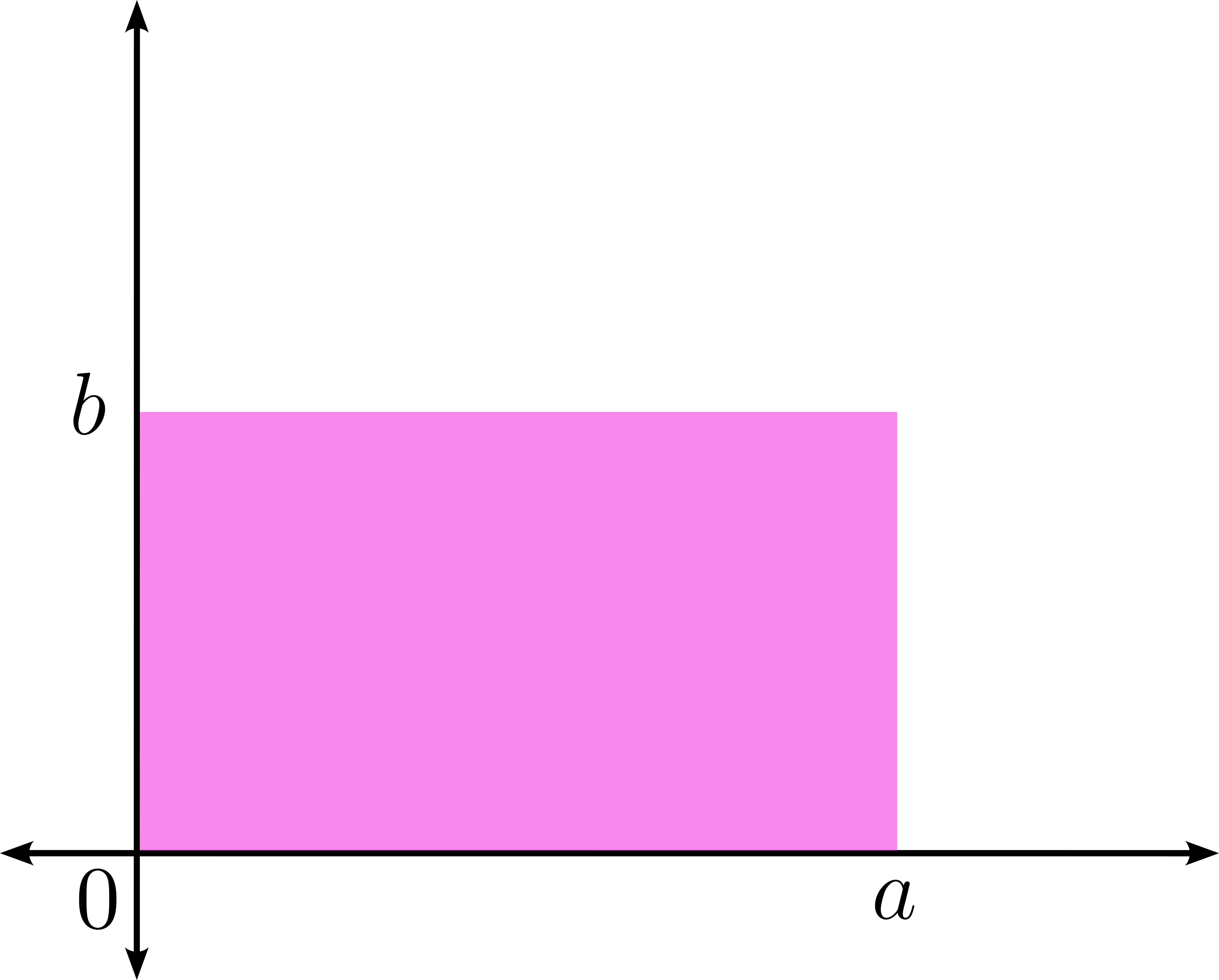 Siendo $a,b \geq 0,$ considera el rectángulo de base $a$ y altura $b$ posicionado en el primer cuadrante, como muestra la figura.