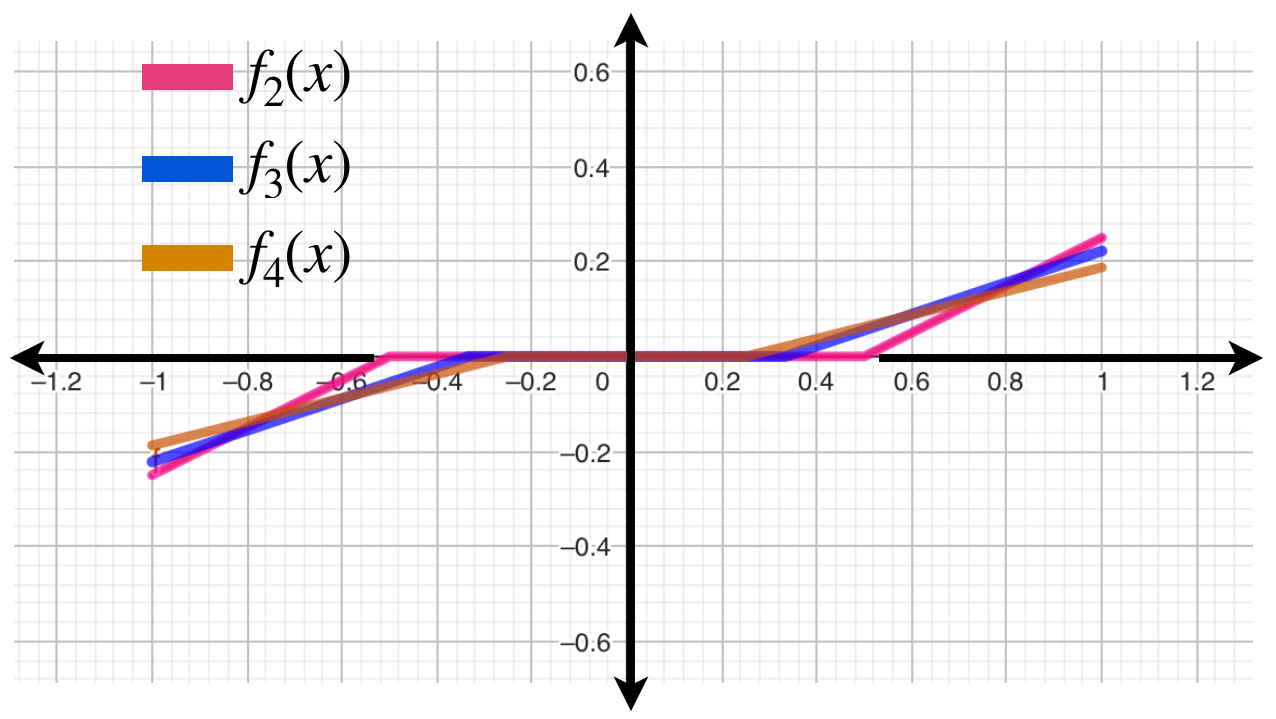 Ejemplo. Considera el conjunto de funciones $\{f_k: f_k \in \mathcal{C}^0([-1,1], \mathbb{R}), \, k \in \mathbb{N}\}, \,$ donde