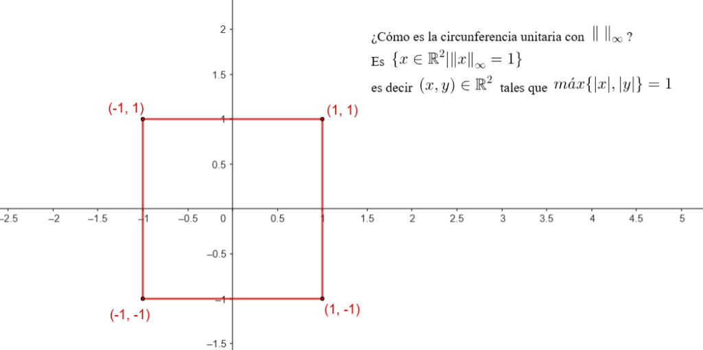 En la imagen que colocamos a continuación, puedes ver la circunferencia unitaria con $\| \; \|_{\infty}$