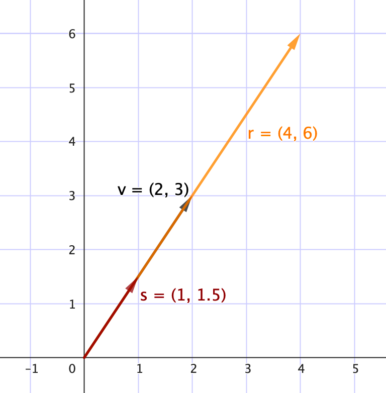 La multiplicación de un vector $\mathbf{v}$ por un escalar consiste en multiplicar cada componente del vector por el mismo número real $\lambda$ y se define como
