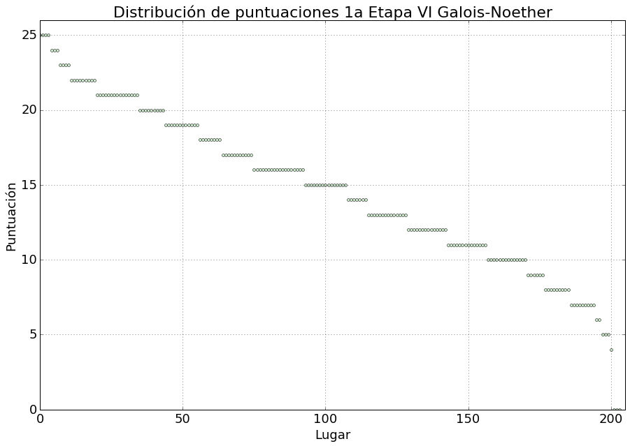 - De acuerdo con la convocatoria del Galois-Noether, continúan participando para ganar el concurso los mejores 24 lugares, así como todos los participantes empatados con el lugar 24. Para este filtro, la puntuación para pasar fue de 21 puntos, y de este modo 35 estudiantes continúan participando.
